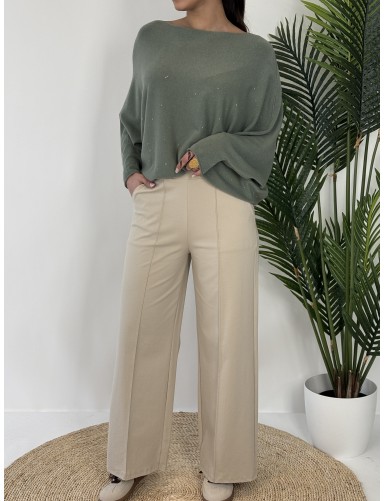Nouveau nouvelle-categorie-pour-facebook Pantalon léger beige Mina Taille : TU Couleur : Pantalon léger Coupe : large et ample Taille : haute Détails : poches avant + élastique dans le dos Couleur : beige Composition : 66% coton, 28%... Beige 25,00 € Prix