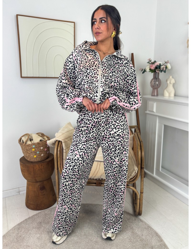 Pantalon style ''jogging'' imprimé léopard rose Tracy